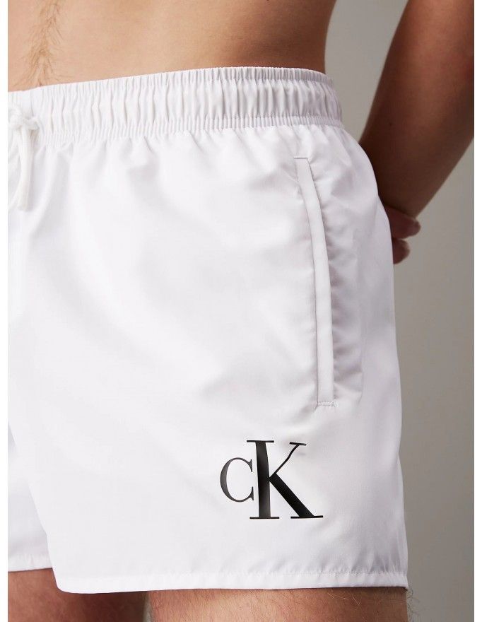 Bañador Calvin Klein corto CK Monogram en color blanco.