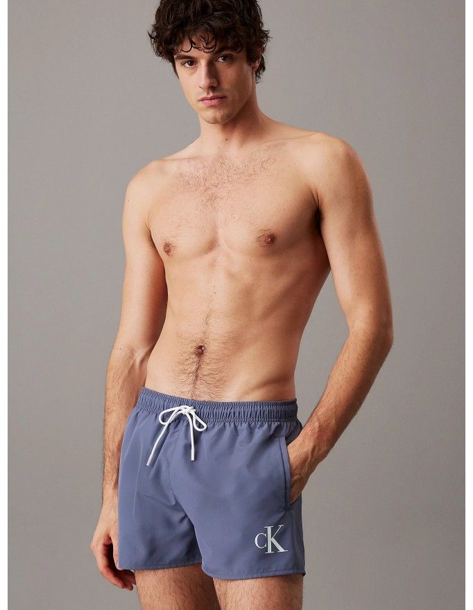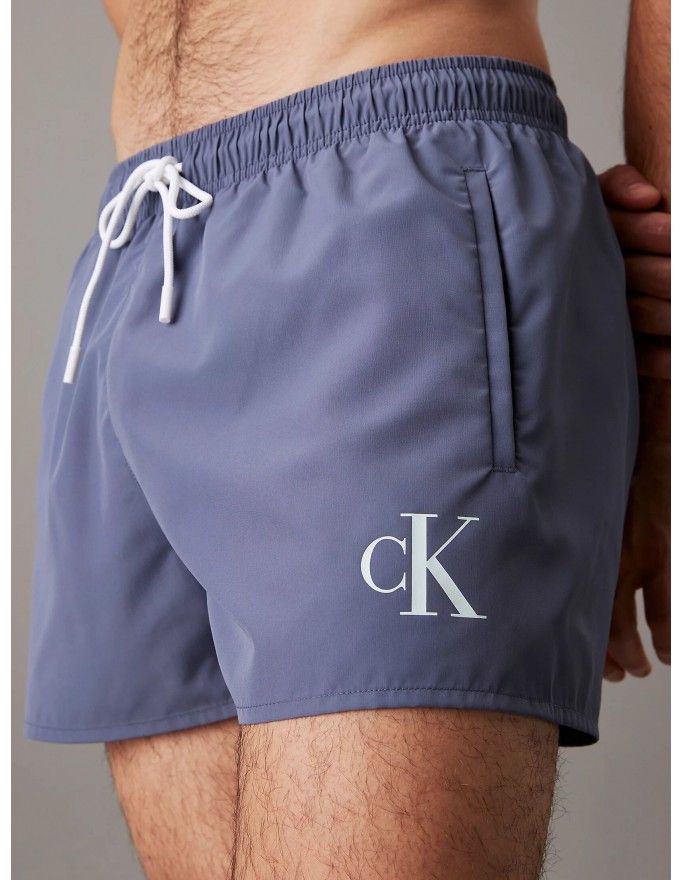 Bañador Calvin Klein corto CK Monogram en color gris.