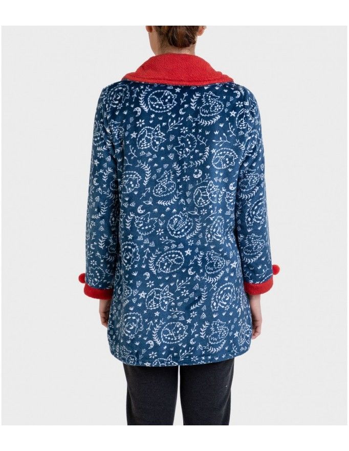 Bata corta de mujer Massana de tejido polar estampado en color petróleo.