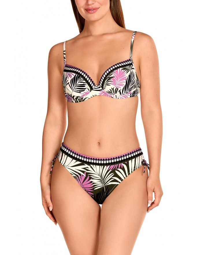 Top bikini Tamouré de capacidad con aros y foam y braguita bikini color beige con estampado floral.