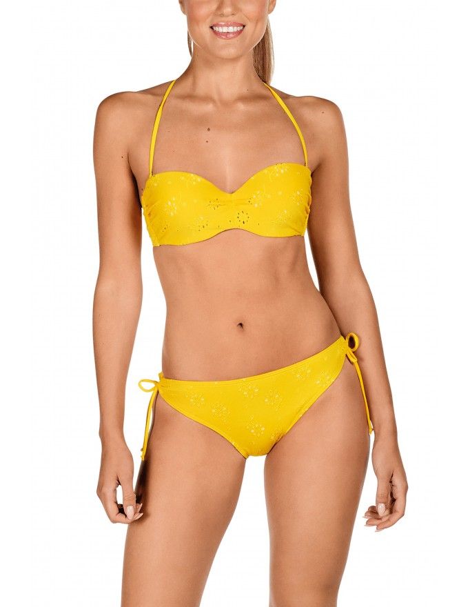 Conjunto de top bikini y braguita a juego Tamouré con bordado floral en color mostaza.