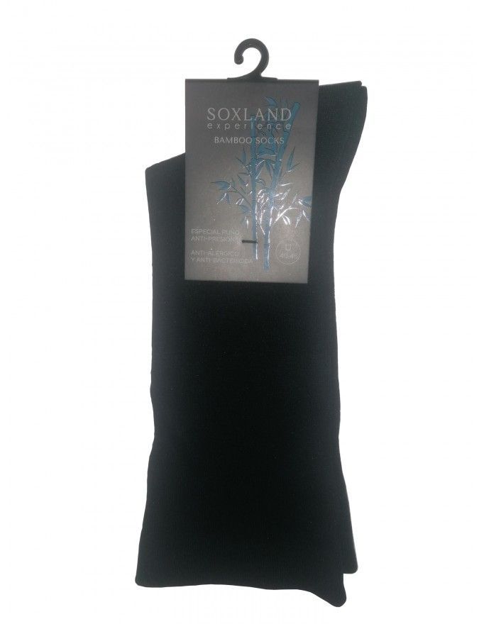 Calcetín Soxland de punto liso bambú con puño antipresión en color negro, gris y marino. Calcetín de media caña muy cómodo y suave con puño antipresión, remallado a mano, no oprime, favoreciendo la circulación. Está confeccionado con una fina hilatura de bambú anti-alérgica y anti-bactericida, con la puntera sin costuras para evitar molestias.