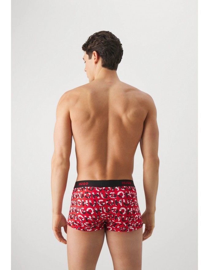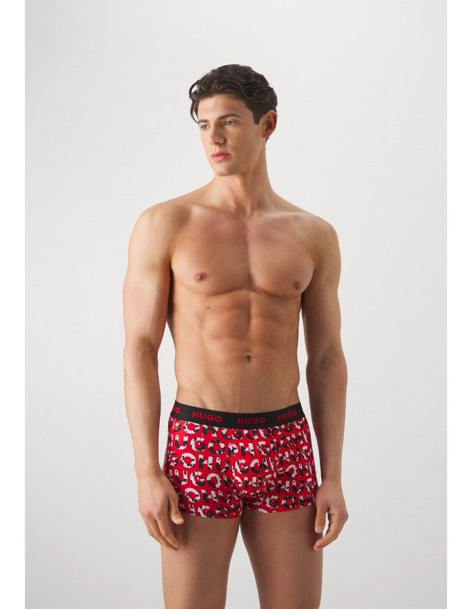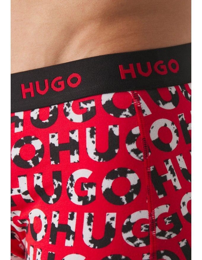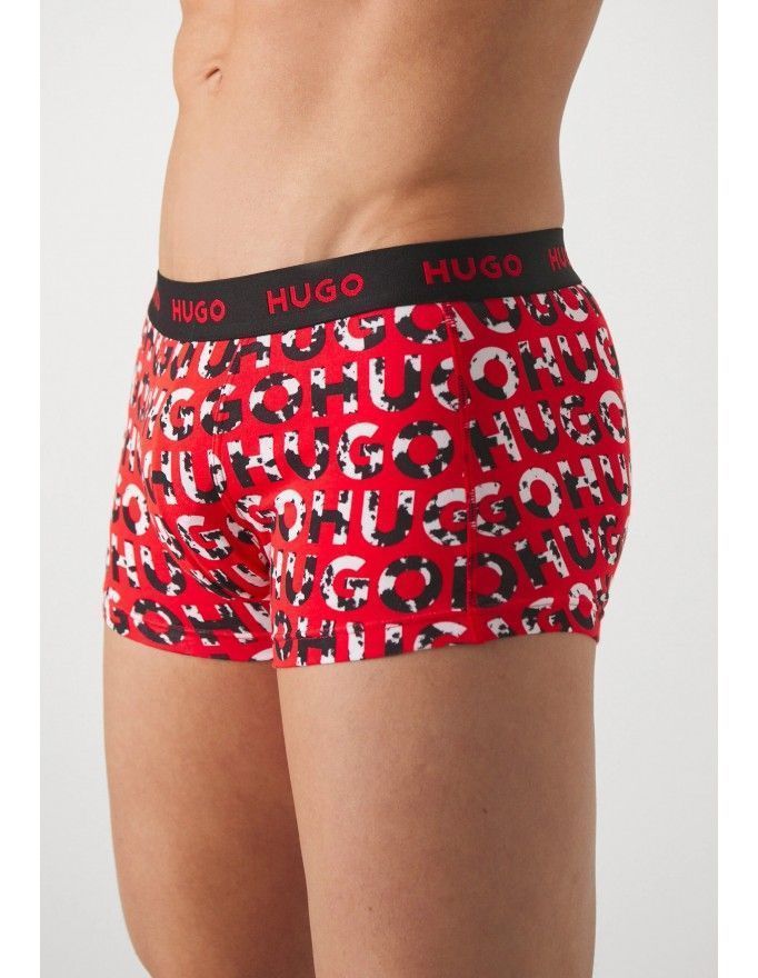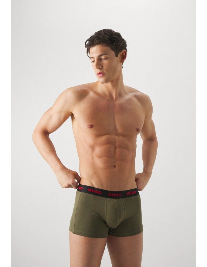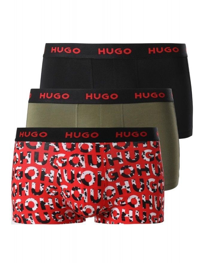 Pack de 3 bóxer Hugo Design Cotton Stretch en color negro, kaki y fantasía.