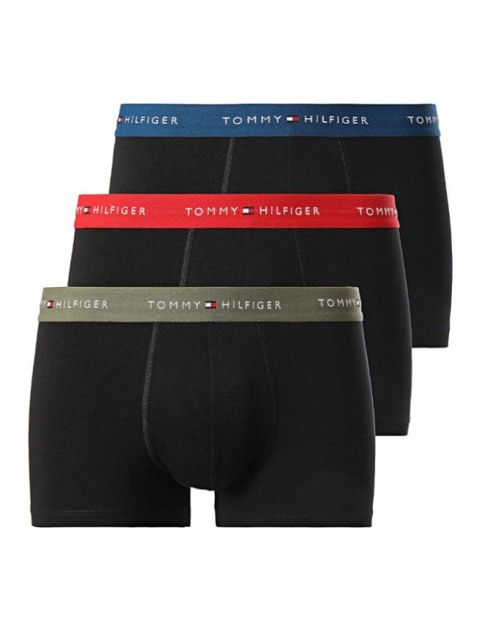 Bóxer Tommy Hilfiger -3 Pack- Signature Cotton Essentials (Negro Cint. Verde, Roja y Marino)