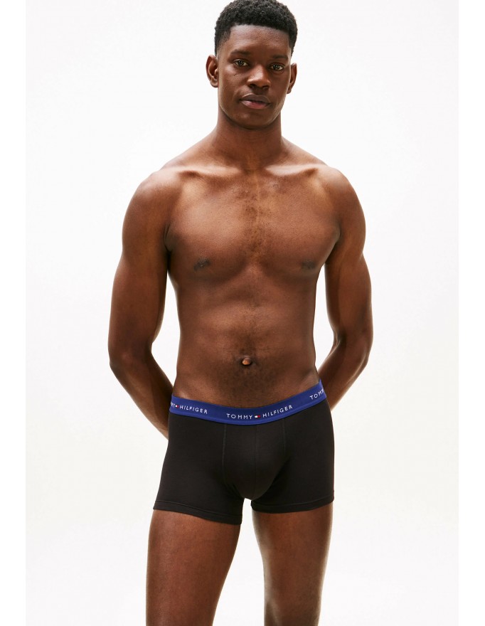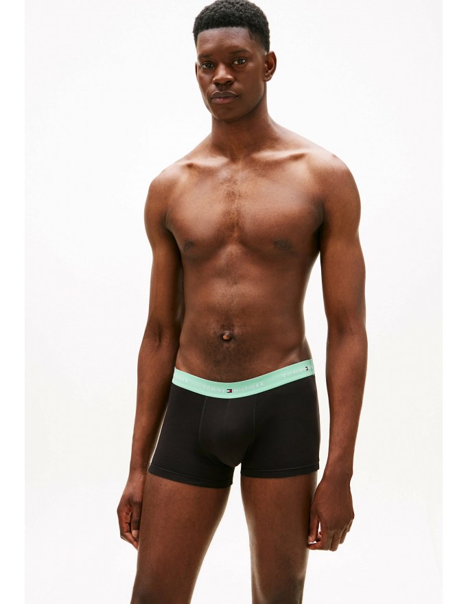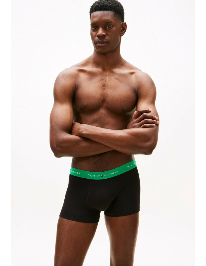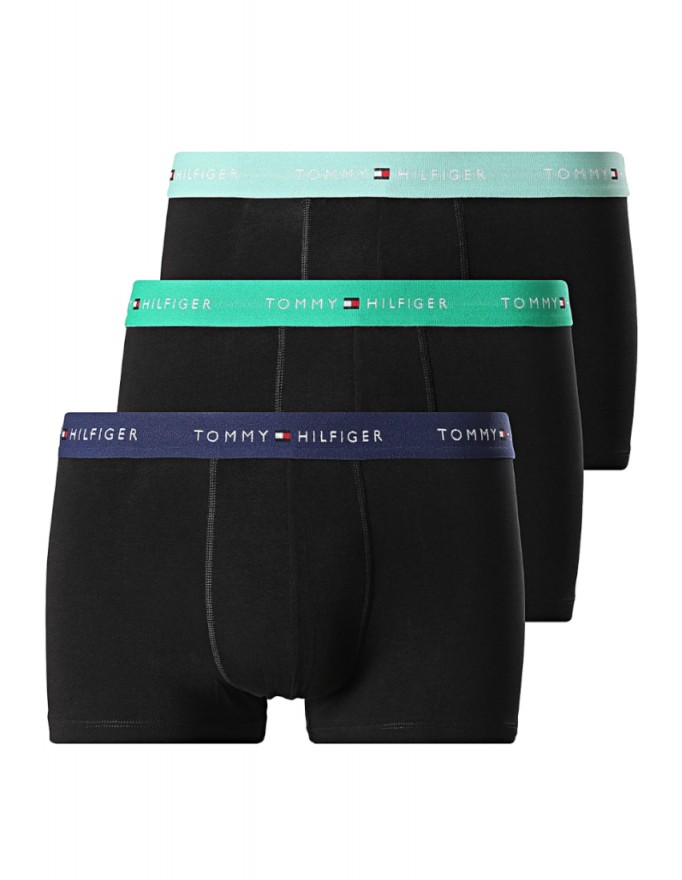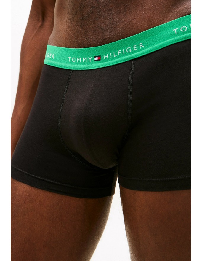 Pack de 3 bóxer Tommy Hilfiger Signature Cotton Essentials en color negro con la cinturilla verde, marino y verde.