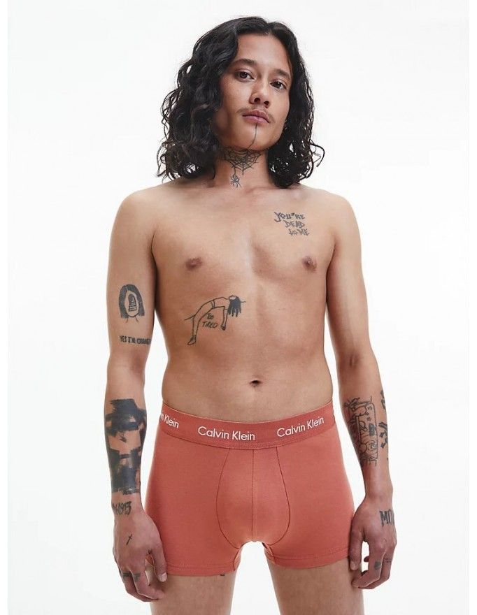 Pack de 3 bóxer Calvin Klein Cotton Stretch Low Rise en color azul, ocre y blanco.