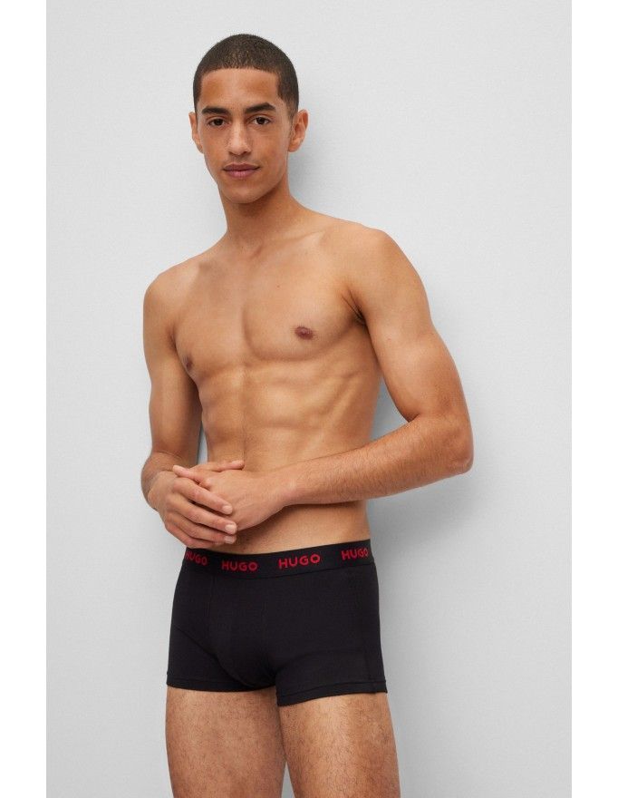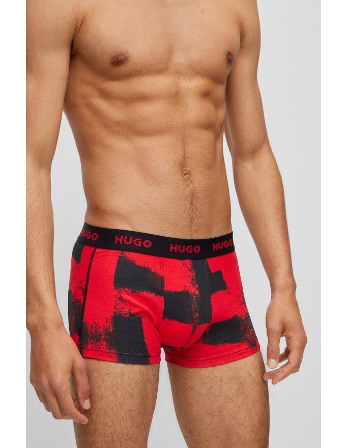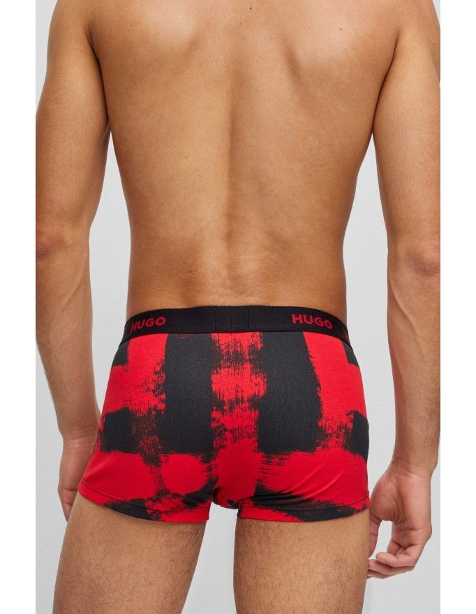 Pack de 3 bóxer Hugo Design Cotton Stretch en color negro, rojo fantasía y negro.