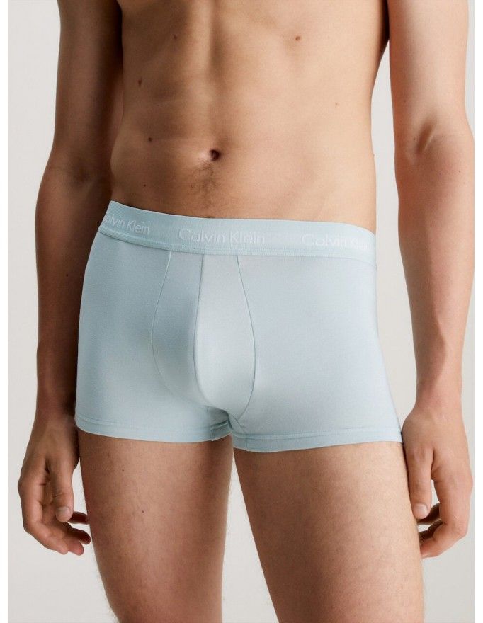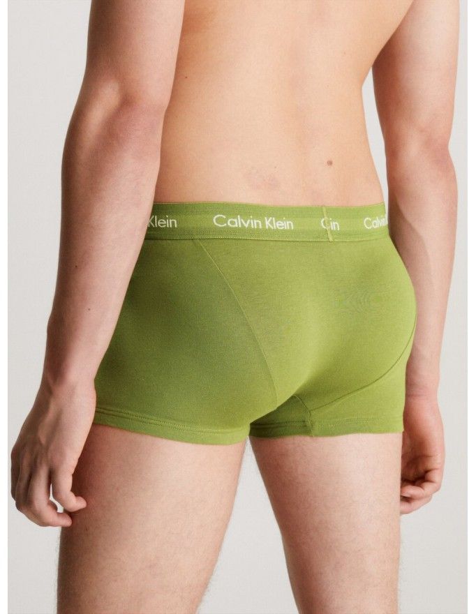 Pack de 3 bóxer Calvin Klein Cotton Stretch Low Rise en color azul, gris y kaki.