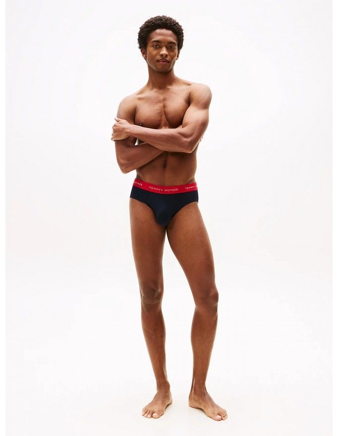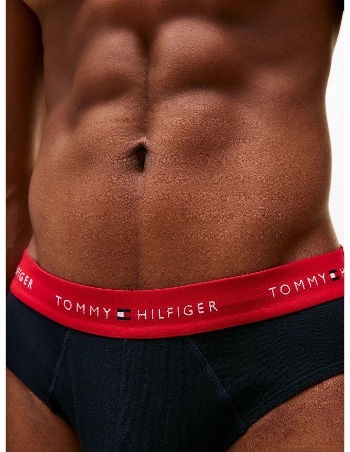 Slip Tommy Hilfiger -3 Pack- Signature Cotton Essentials (Marino Cint. Roja, Blanca y Marino)