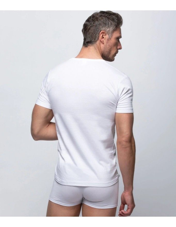 Camiseta interior de hombre Abanderado 100% algodón de cuello de pico y manga corta en color blanco.