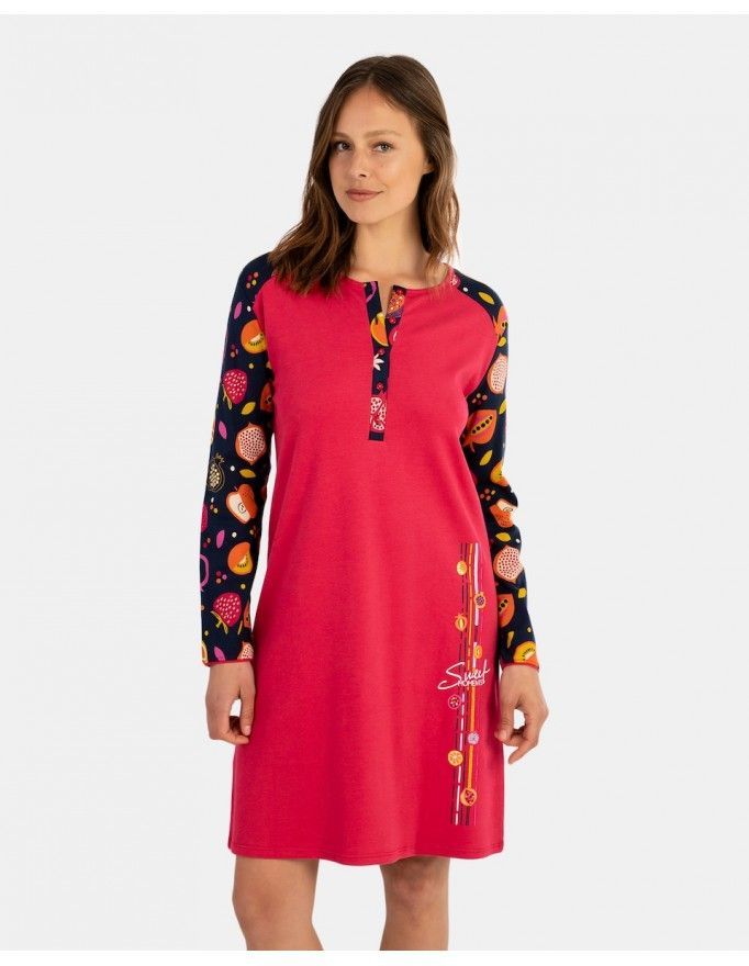 Camisón de mujer Massana de manga larga 100% algodón en color fucsia.