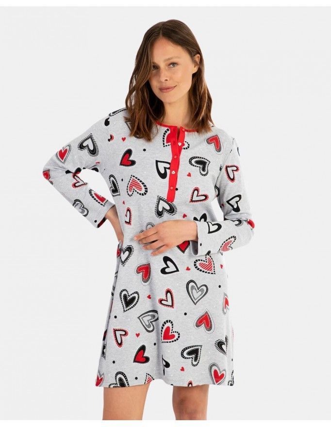 Camisón de Mujer Massana Manga Larga Estampado Corazones (Gris)