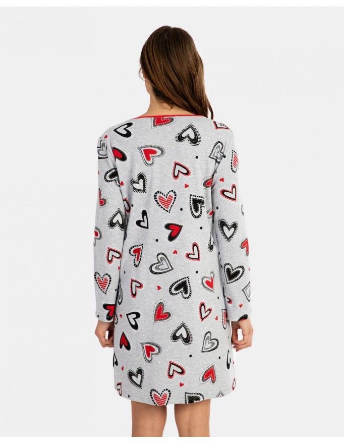 Camisón de mujer Massana de manga larga con estampado de corazones en color gris.
