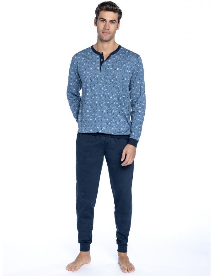 Pijama de hombre Guasch de tejido de punto con estampado de instrumentos en color azul.