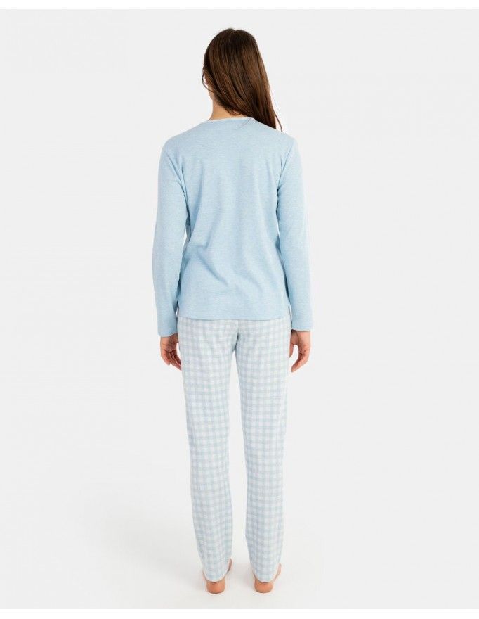Pijama de Mujer Massana Abierto Tejido Jacquard Vichy e Interlock (Celeste)