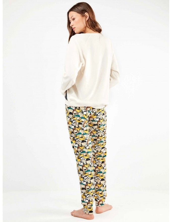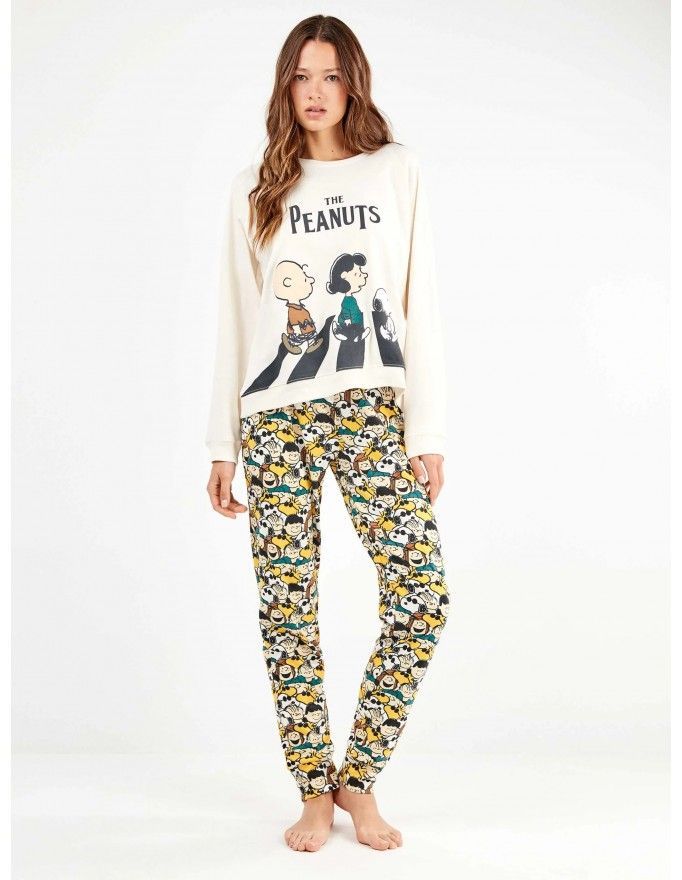 Pijama de mujer Gisela de tejido de punto interlock con estampado de Snoopy en color crudo.