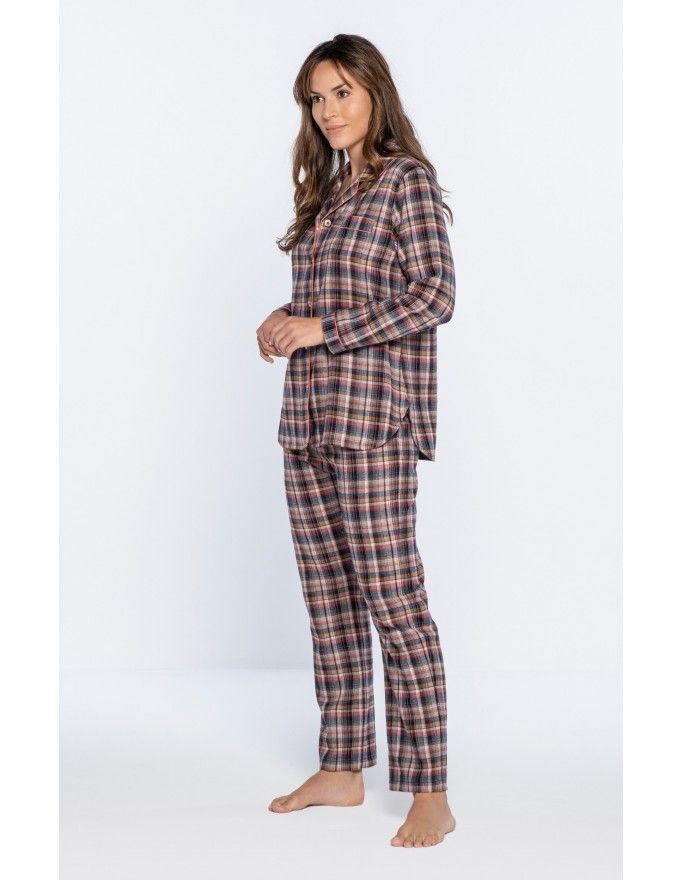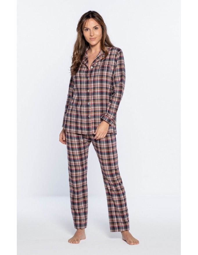Pijama de mujer de Viyela a cuadros con botones en color rojo, de Guasch.