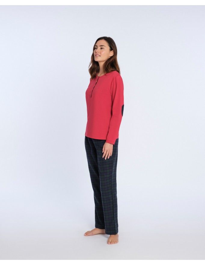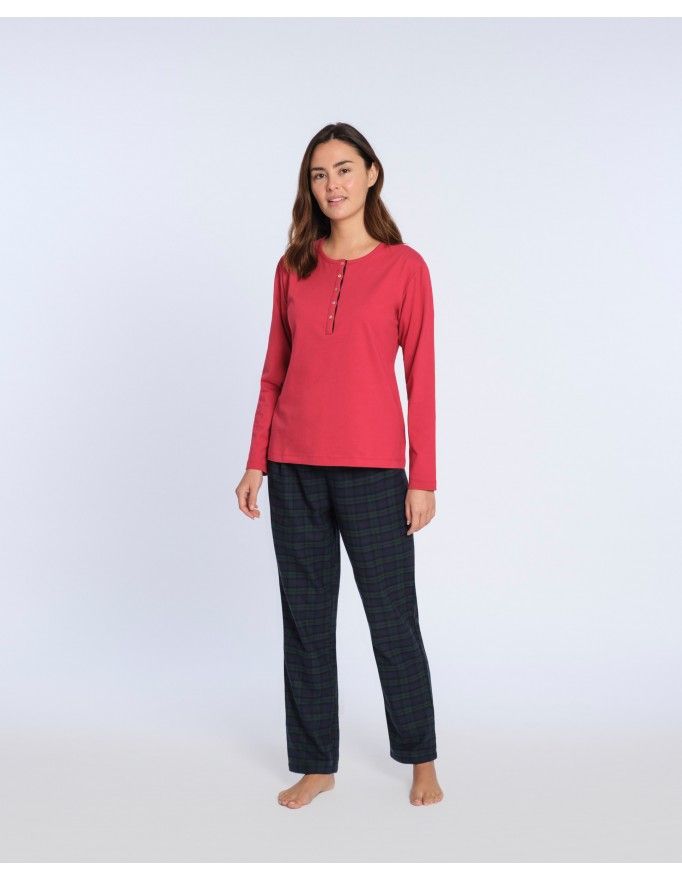 Pijama de mujer Guasch de tejido mixto de punto y viyela en color rojo.
