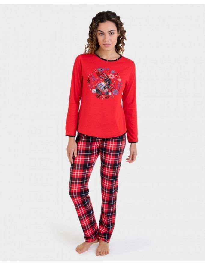 Pijama largo de mujer Massana de tejido de punto estampado en color rojo.