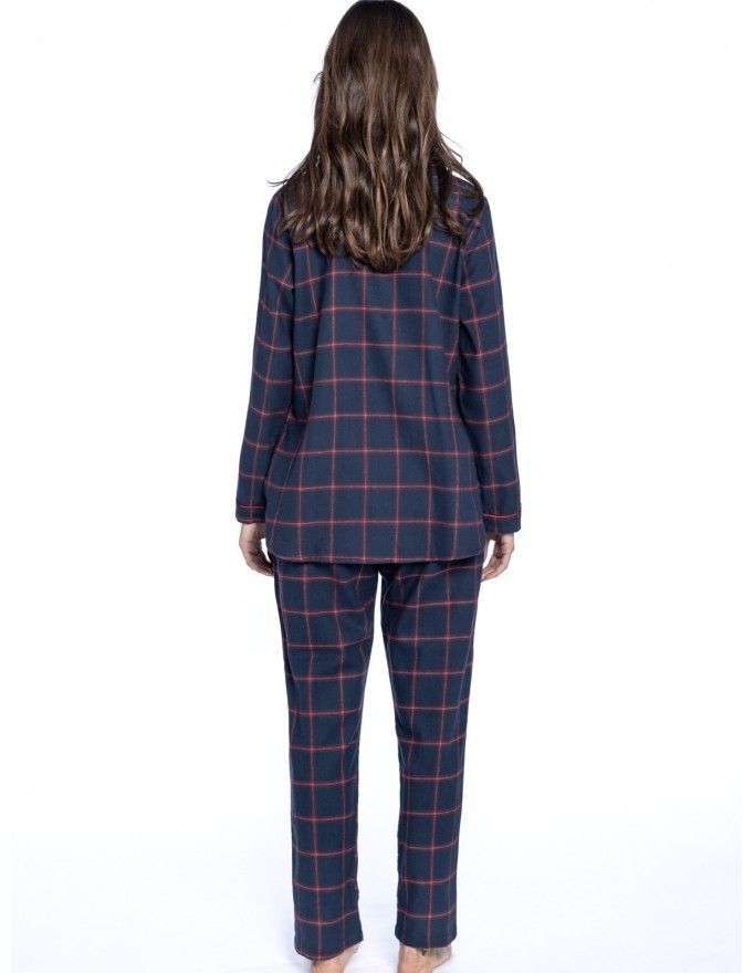 Pijama de mujer Guasch abierto de viyela a cuadros en color marino.