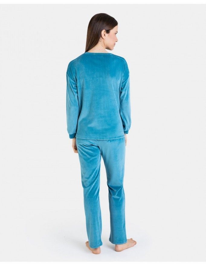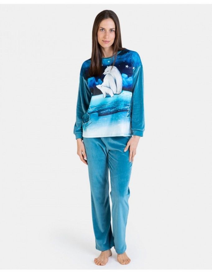 Pijama de mujer Massana de tejido micro polar con estampado de osos polares en color petróleo.