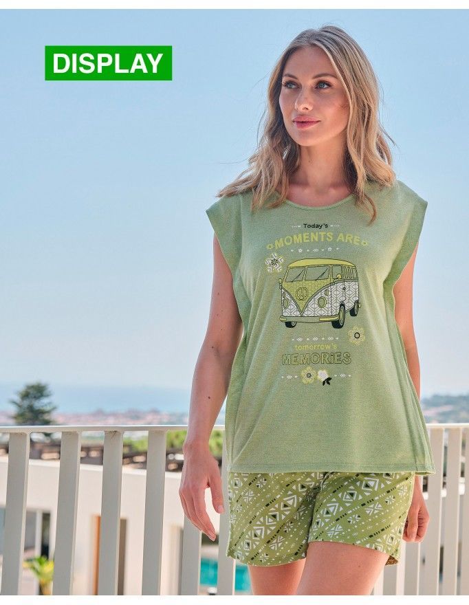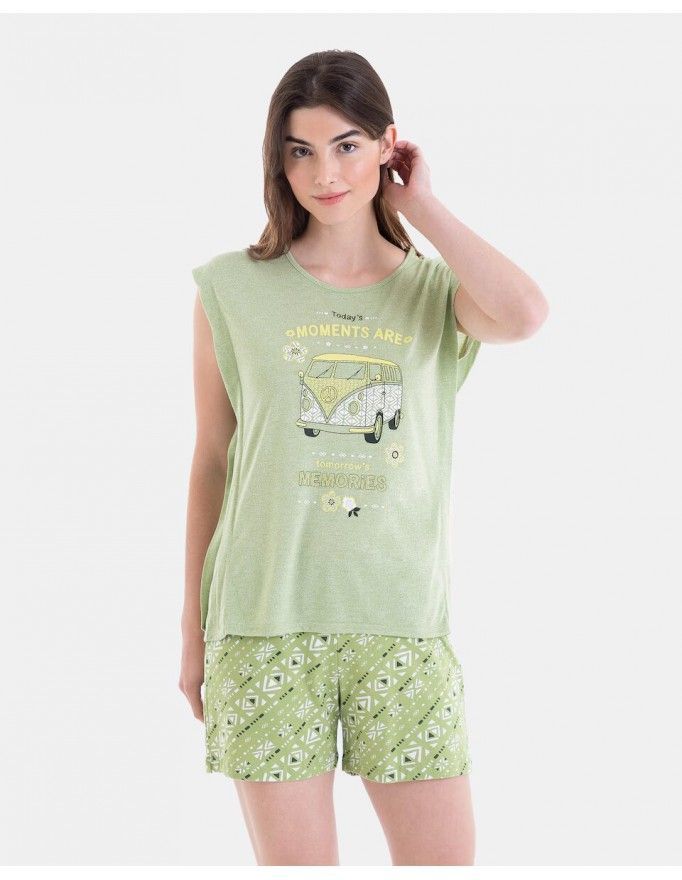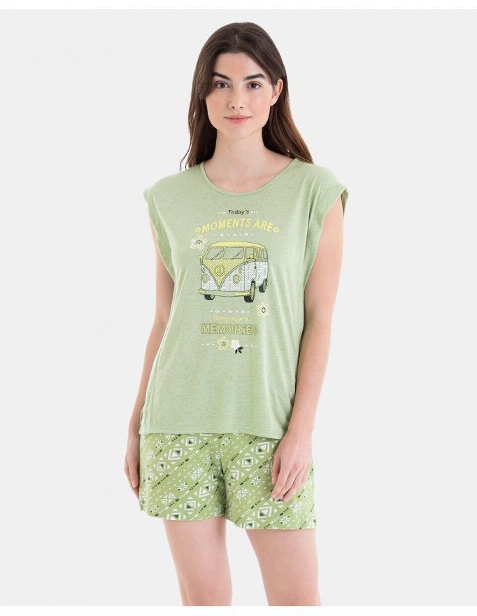 Pijama Corto de Mujer Massana Estampado Furgo (Pistacho)