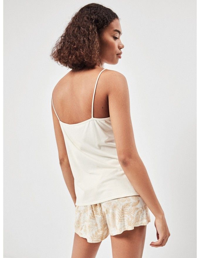 Pijama corto de mujer Gisela de tirantes con encaje en color beige.