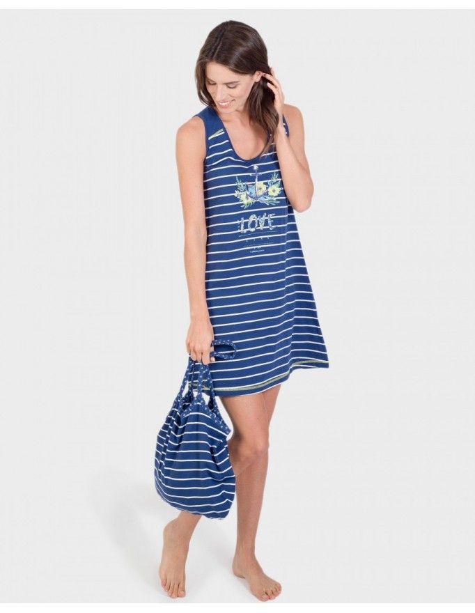 Camisola Massana sem Mangas às Riscas (Marinho)