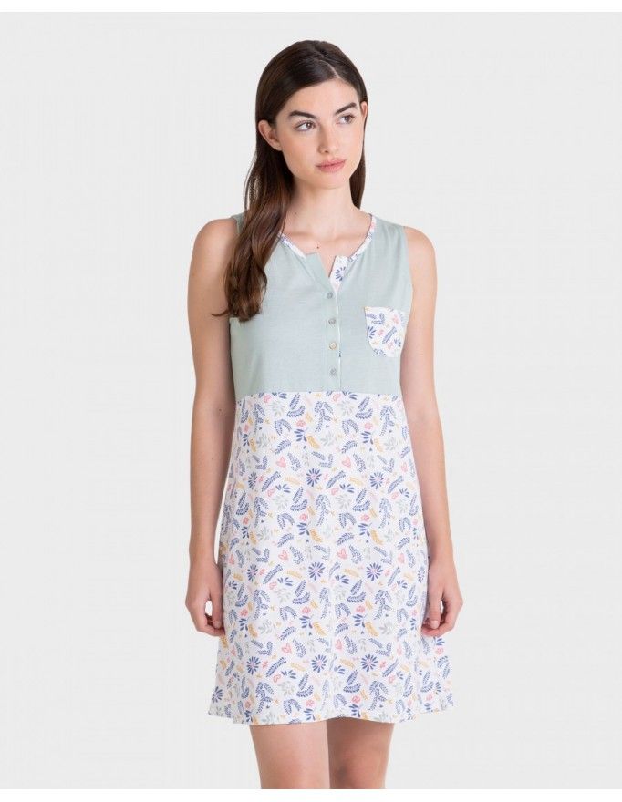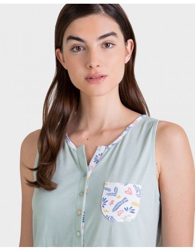 Camisola feminina Massana sem mangas com estampa floral na cor verde.