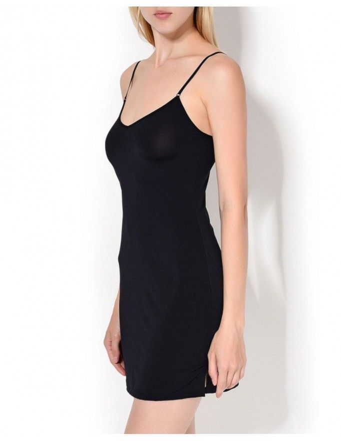 Combinação curta Janira Silk-Caress de microfibra na cor preta.