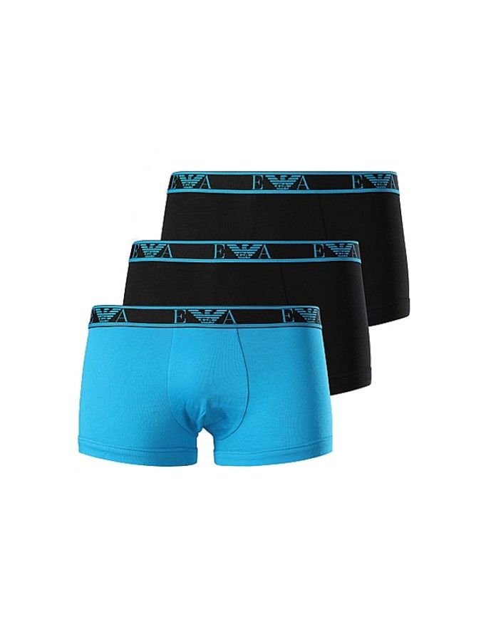Pack de 3 boxers Emporio Armani Stretch Cotton em preto e azul com cós contrastante. Roupa íntima masculina para todos os gostos. A qualidade dos seus materiais faz com que se adapte ao corpo como uma segunda pele, proporcionando um conforto e um ajuste ótimos.