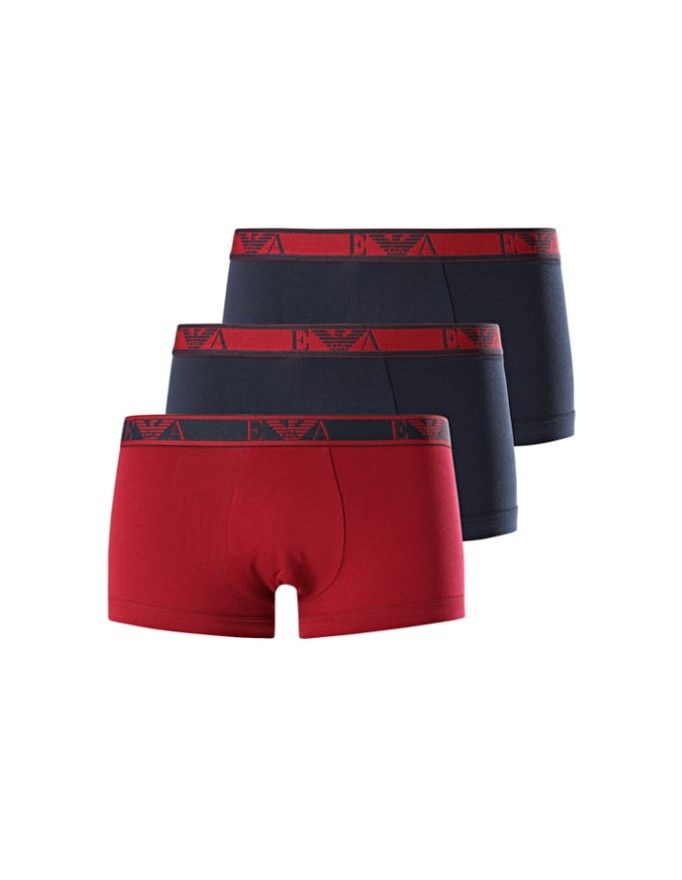 Pack de 3 boxers Emporio Armani stretch cotton em cores marinho, granate e marinho.