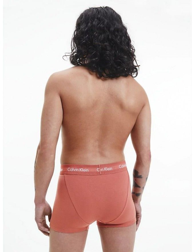 Pack de 3 boxers Calvin Klein Cotton Stretch Low Rise nas cores azul, ocre e branco.