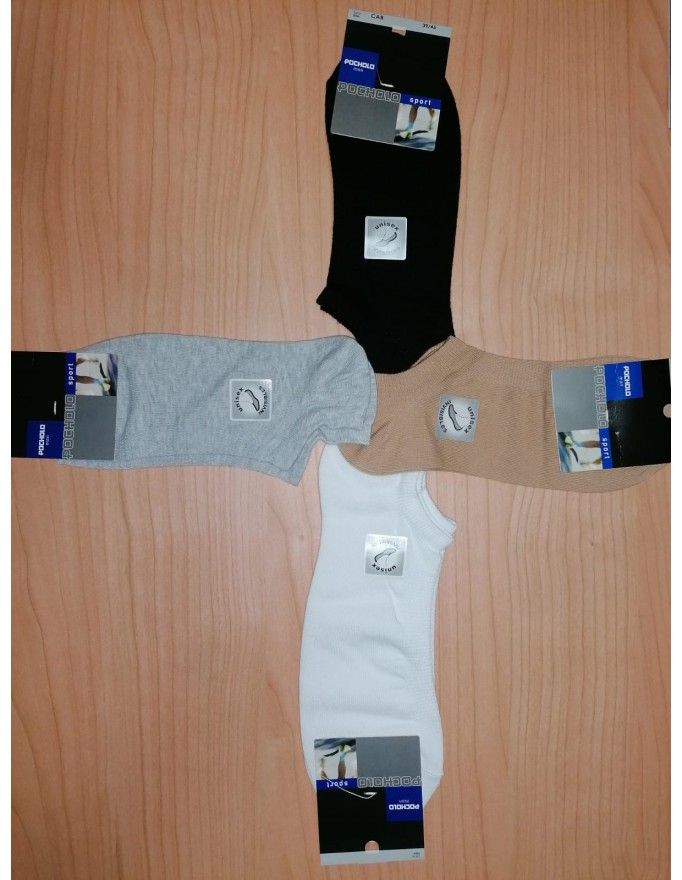 Meia masculina Pocholo de algodão liso invisível em várias cores.