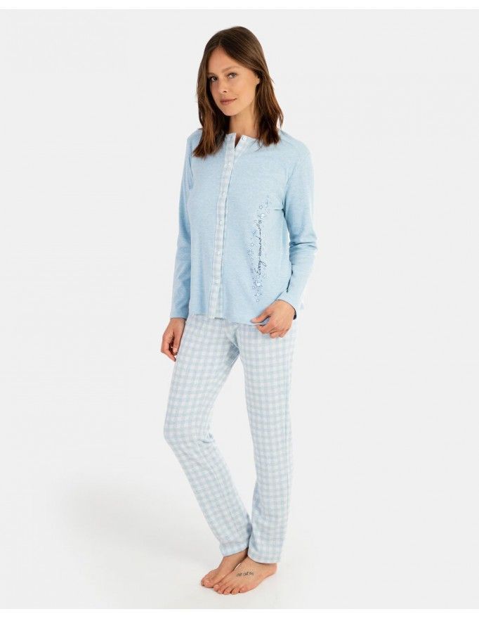 Pijama de Mulher Guasch Aberto de Viyela em Xadrez (Marinho)