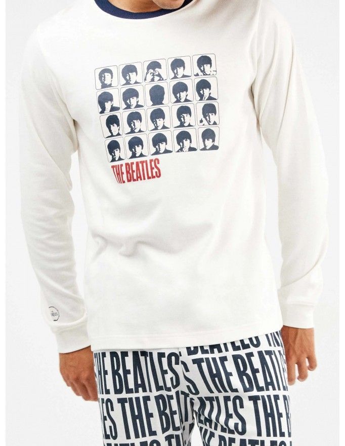 Pijama masculino Gisela de tecido interlock com estampa The Beatles na cor cru.