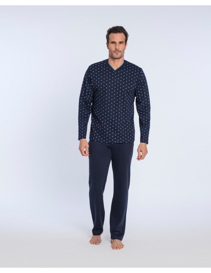 Pijama masculino Guasch de tecido de malha felpudo na cor marinho.