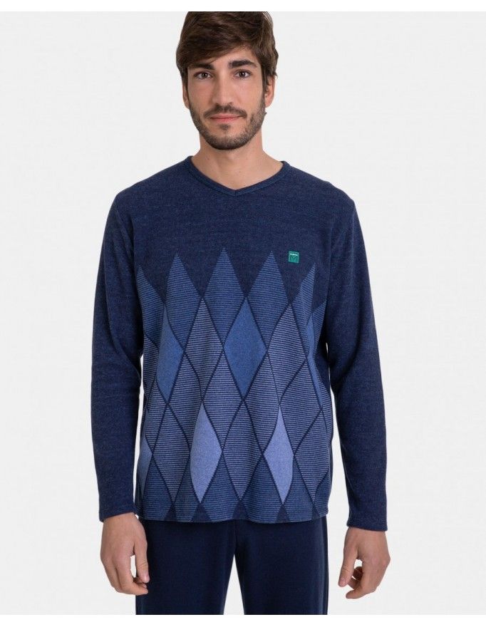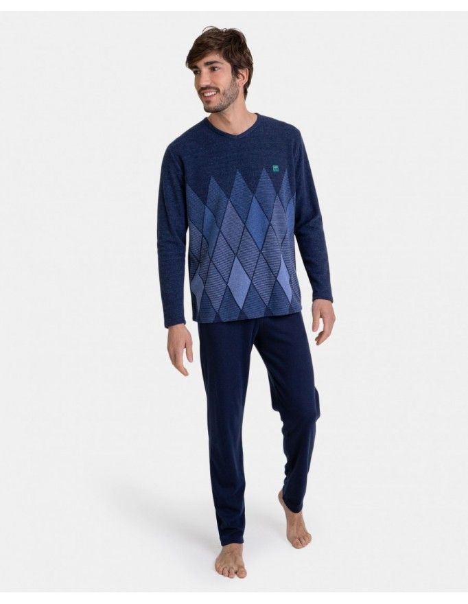 Pijama para Homem Massana Tecido Jacquard Camurçado (Marinho)