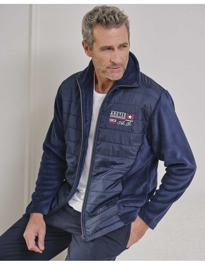 Manta curta Massana de tecido polar com estampa geométrica em verde.
