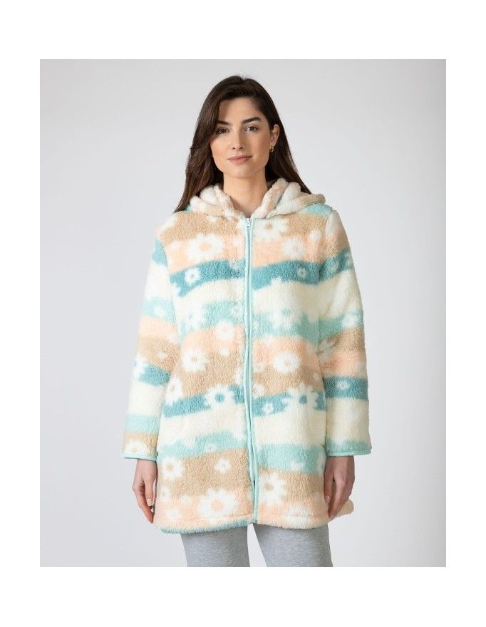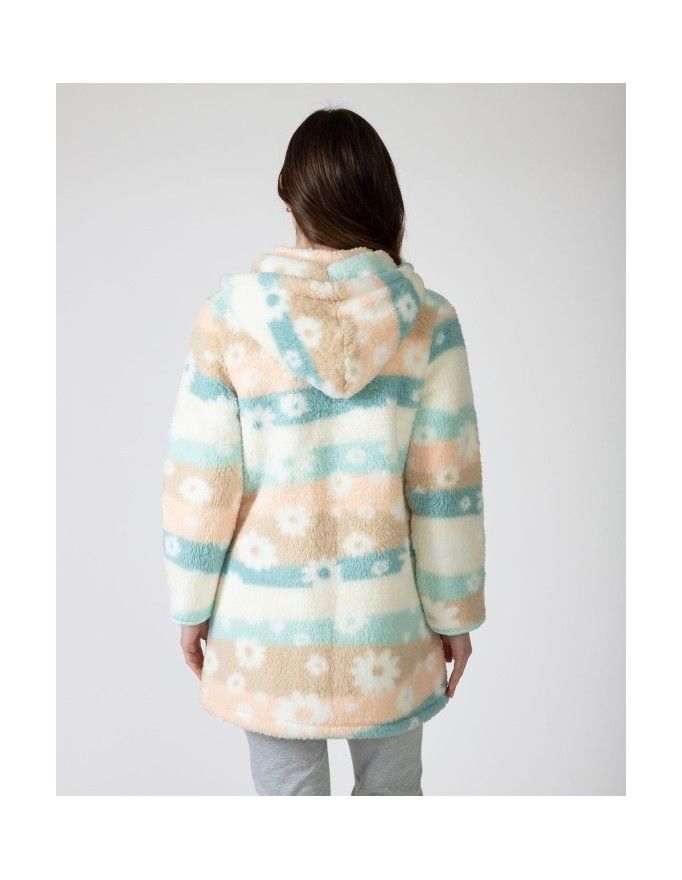 Bata curta feminina Massana Tecido Polar Estampado Nights (Cinza e Rosa)