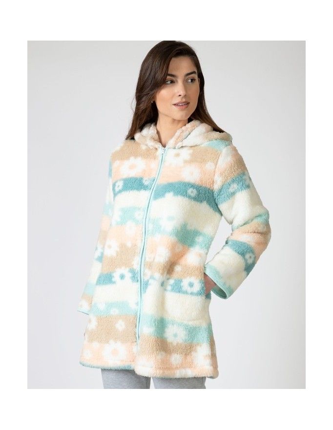 Bata Curta Feminina Massana Tecido Tipo Cordeiro (Azul)