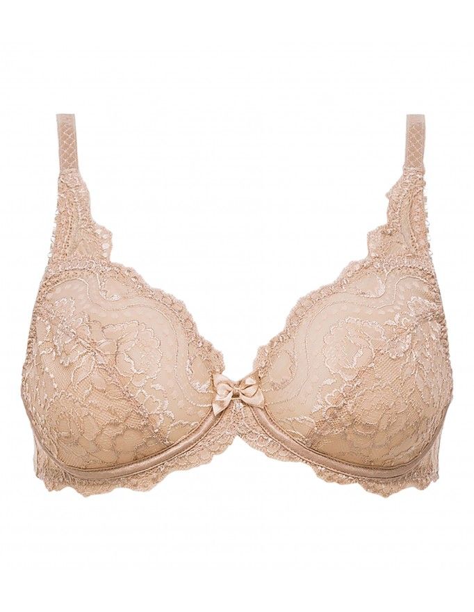 Sutiã de renda Playtex com aros Flower Elegance na cor pele.