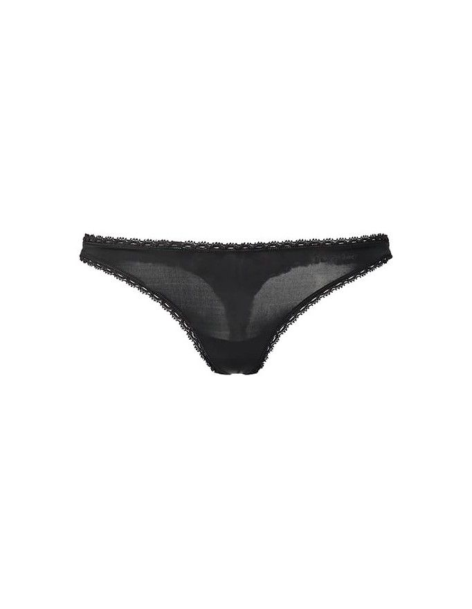 Tanga Calvin Klein Seductive Comfort básica na cor preta. Confeccionada com tecido de microfibra muito suave e acabada com bordas de renda ao longo da cintura e abertura das pernas. Cintura baixa. Logo da Calvin Klein em relevo na parte esquerda do quadril.