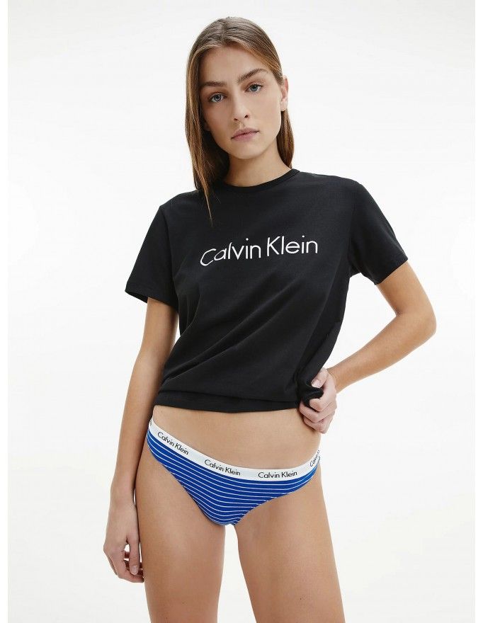 Pacote de 3 tangas Calvin Klein Carousel nas cores preto, salmão e azul às riscas.